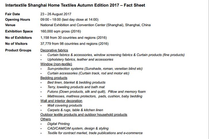 Welcome to Intertextile Shanghai Home Textiles - Autumn Edition 2017