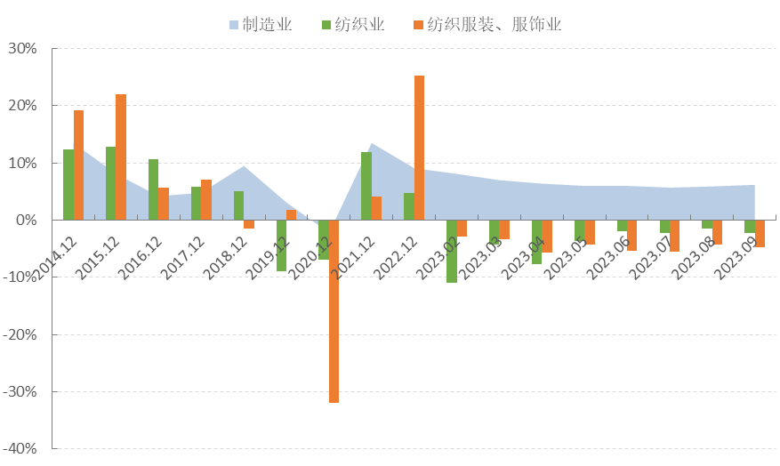 圖5 2023年1-9月服裝行業固定資產投資增速情況