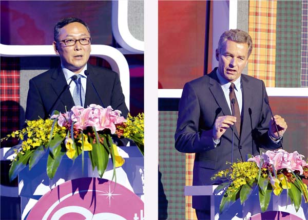 徐迎新代表主辦方致20周年慶典開幕辭。他深情回顧道,這是具有歷史意義的一刻,20 年前的一天,一位法蘭克福展覽公司的負責人叩開了辦公室的門,從那時起,intertextile 面輔料展起航。當時正值中國內需市場蓄勢待發之際,我們以面料為突破口,以展會的形式,為行業全面提升搭建了全新平臺,提供了新的發展契機。