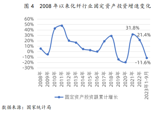 據(jù)國(guó)家統(tǒng)計(jì)局?jǐn)?shù)據(jù),1-9月化纖行業(yè)固定資產(chǎn)投資額同比下降11.6%,降幅較1-6月加深4.6個(gè)百分點(diǎn)。但從實(shí)際新增產(chǎn)能來(lái)看,截至目前仍有將近1000萬(wàn)噸的聚酯產(chǎn)能投產(chǎn)。