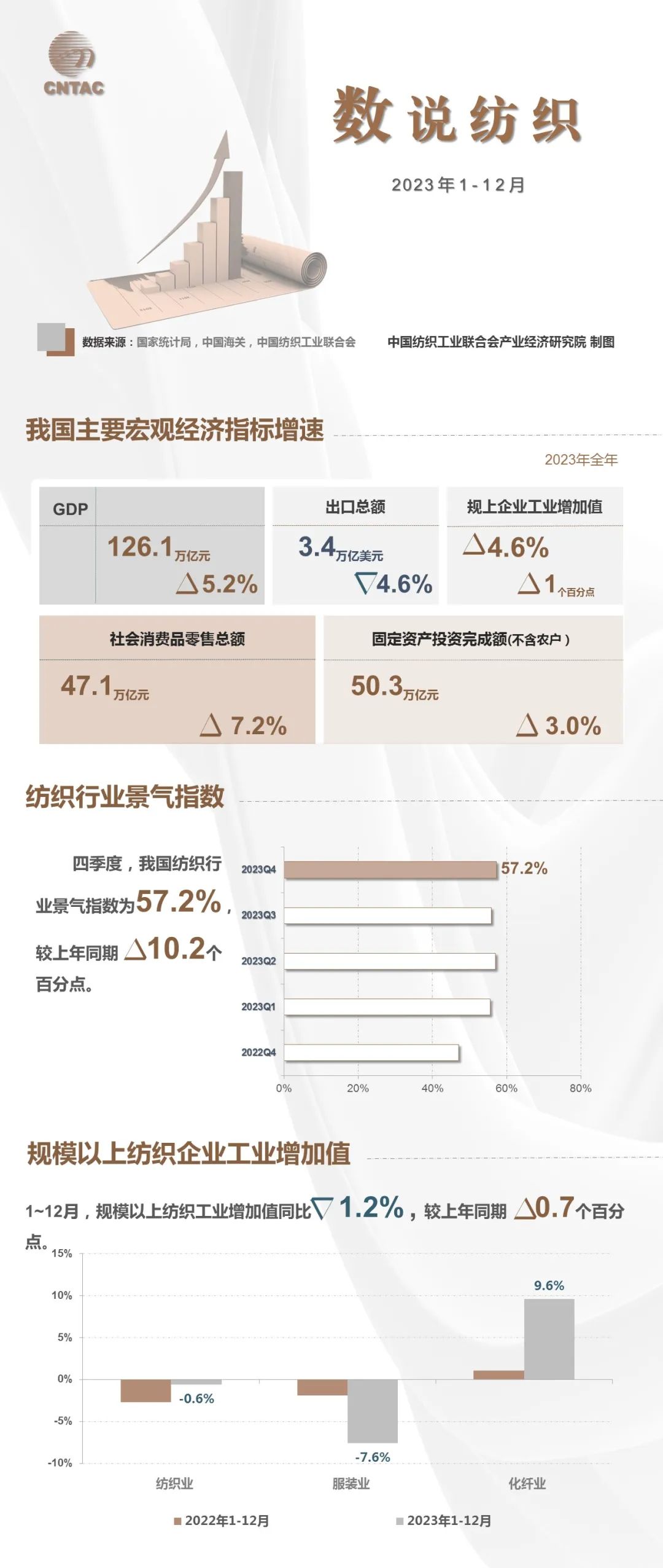 您現在的位置是:首頁 > 要聞 “數”說紡織:2023年1~12月 來源:中國紡織工業聯合會產業經濟研究院 發布日期:2024-02-20 字體: 【小】 【中】 【大】 分享: 熱門文章: 2025intertextile春夏 | “友禮”同享齊觀展... [2025-02-19] 2024年我國紡織行業經濟運行總體平穩 [2025-02-17] 聚焦綠色智慧融合 展示產業用紡織品新趨勢 [2025-02-11] 響應政策 落實服務 | PH Value義烏展全力“備戰”中 [2025-02-11] 【亮星季】第一期正式開啟 | 商貿先行,品質好禮享不停 [2025-02-10] 展會直通車
