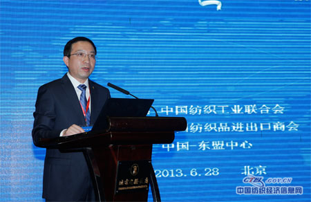 由中國紡織工業(yè)聯(lián)合會主辦,中國紡織品進(jìn)出口商會、中國-東盟中心協(xié)辦的中國紡織產(chǎn)業(yè)實(shí)施"走出去"戰(zhàn)略交流大會于6月28日在北京國際飯店會議中心召開并圓滿閉幕。